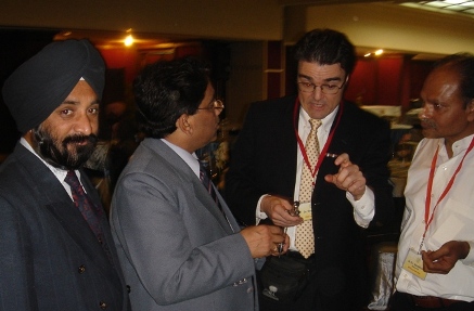 Dr. Stein explains use of the MadaJet for no-needle anesthesia to Indian colleagues in Amritsar.