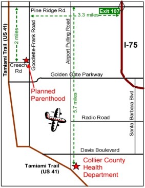 Although the address is Tamiami Trail (US 41), the Health Department offices are more easily approached from the entrance to the Government Center complex of offices on Airport Pulling Road, just north of the intersection of Airport Pulling and Tamiami Trail.